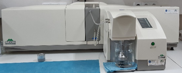 | Laser Diffraction Spectroscopy (LDS) | Malvern Instruments, Mastersizer 2000 AP A2000 | Measures particle size by laser diffraction. The signal can be processed according to the Fraunhofer or Mie Scattering theories depending on the characteristics and size of the particles. The equipment's operating range is from 0.02 μm to 2 000 μm. Measurements are made in a humid environment. The equipment has a HYDRO UM manual dispersion accessory with a capacity of 600-1000 ml (depending on the size of the beaker in which the suspension is prepared). It has an ultrasound system with a maximum frequency of 20 kHz, which can be used to deagglomerate aggregates. |  |