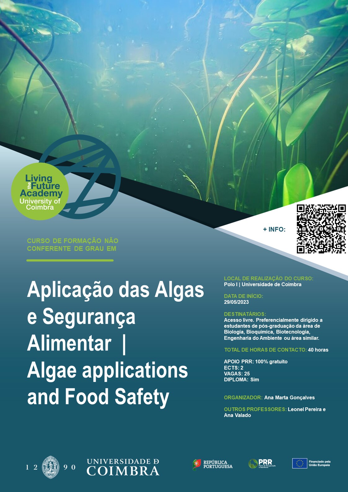 O curso de formação em "Aplicação das Algas e Segurança Alimentar" tem como principais objetivos fornecer técnicas e metodologias de extração e caracterização de compostos bioativos e avalação do perfil nutricional de macroalgas.