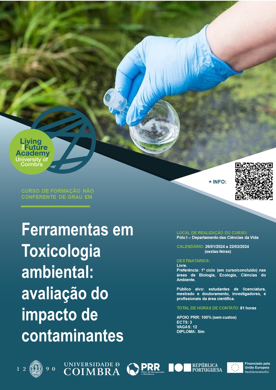 O curso de "Ferramentas em toxicologia ambiental: avaliação do impacto de contaminantes" visa promover a aquisição de conhecimentos e competências sobre ferramentas em toxicológica ambiental para a avaliação dos impactos dos contaminantes nos ecossistemas.