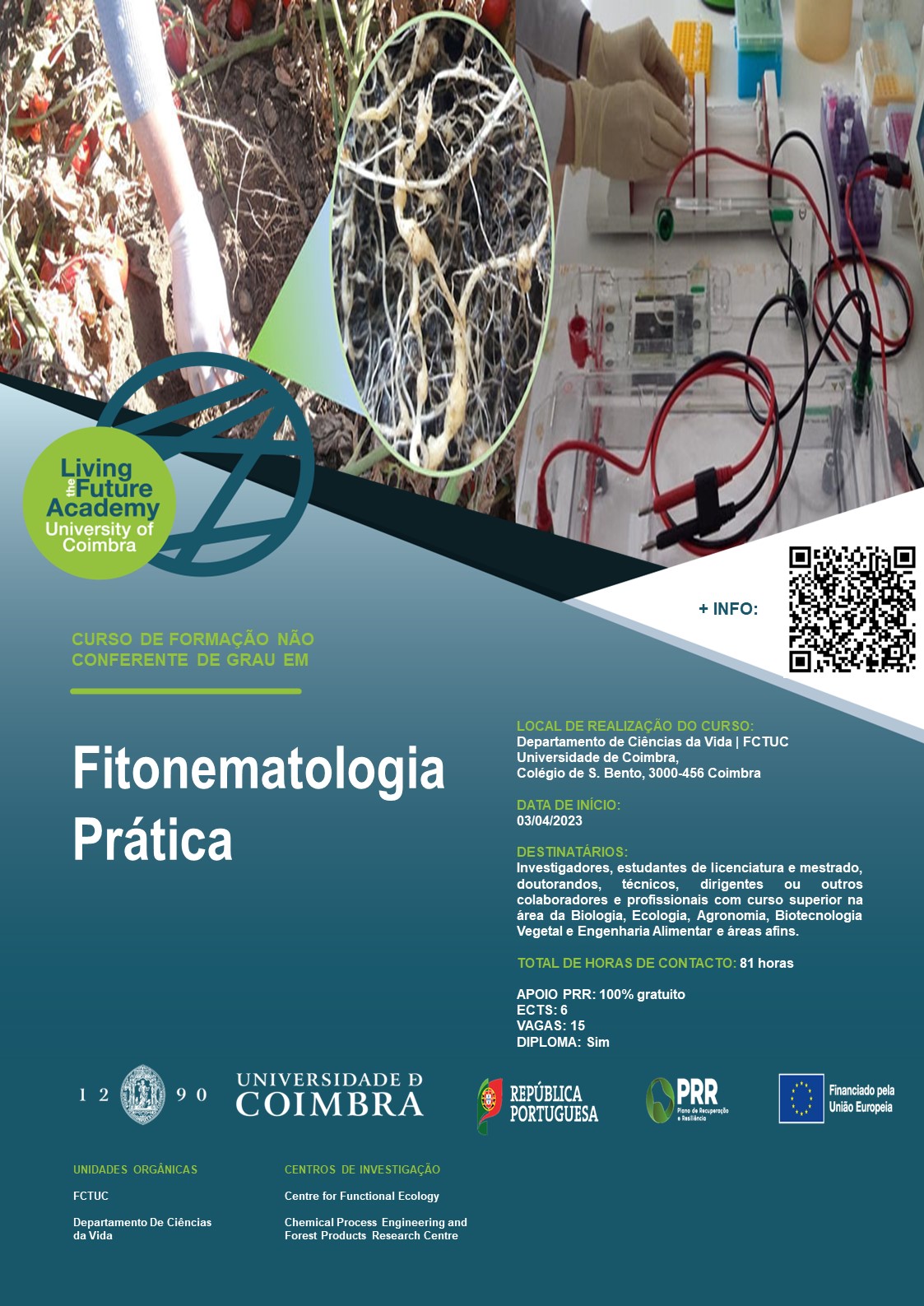Os principais objetivos do curso em Fitonematologia Prática centram-se, de modo particular, em sensibilizar para a importância e impacto dos NPP nos ecossistemasdos géneros Meloidogyne (nemátodes das galhas radiculares), Globodera (nemátodes de quisto) e Pratylenchus (nemátodes das lesões radiculares) e o nemátode da madeira do pinheiro Bursaphelenchus xylophilus; compreender o complexo modo de vida dos principais NPP; aprender várias técnicas de amostragem e extração de nemátodes a partir de amostras de solo e material vegetal; identificar NPP a partir de amostras de solo; aplicar técnicas bioquímicas e moleculares comumente usadas na identificação de NPP; avaliar as principais estratégias de controlo de NPP; saber os principais métodos de extração de compostos fitoquímicos com atividade nematodicida; resolver situações práticas de deteção de NPP em sistemas agroflorestais; conhecer legislação Nacional/Europeia para NPP de quarentena.