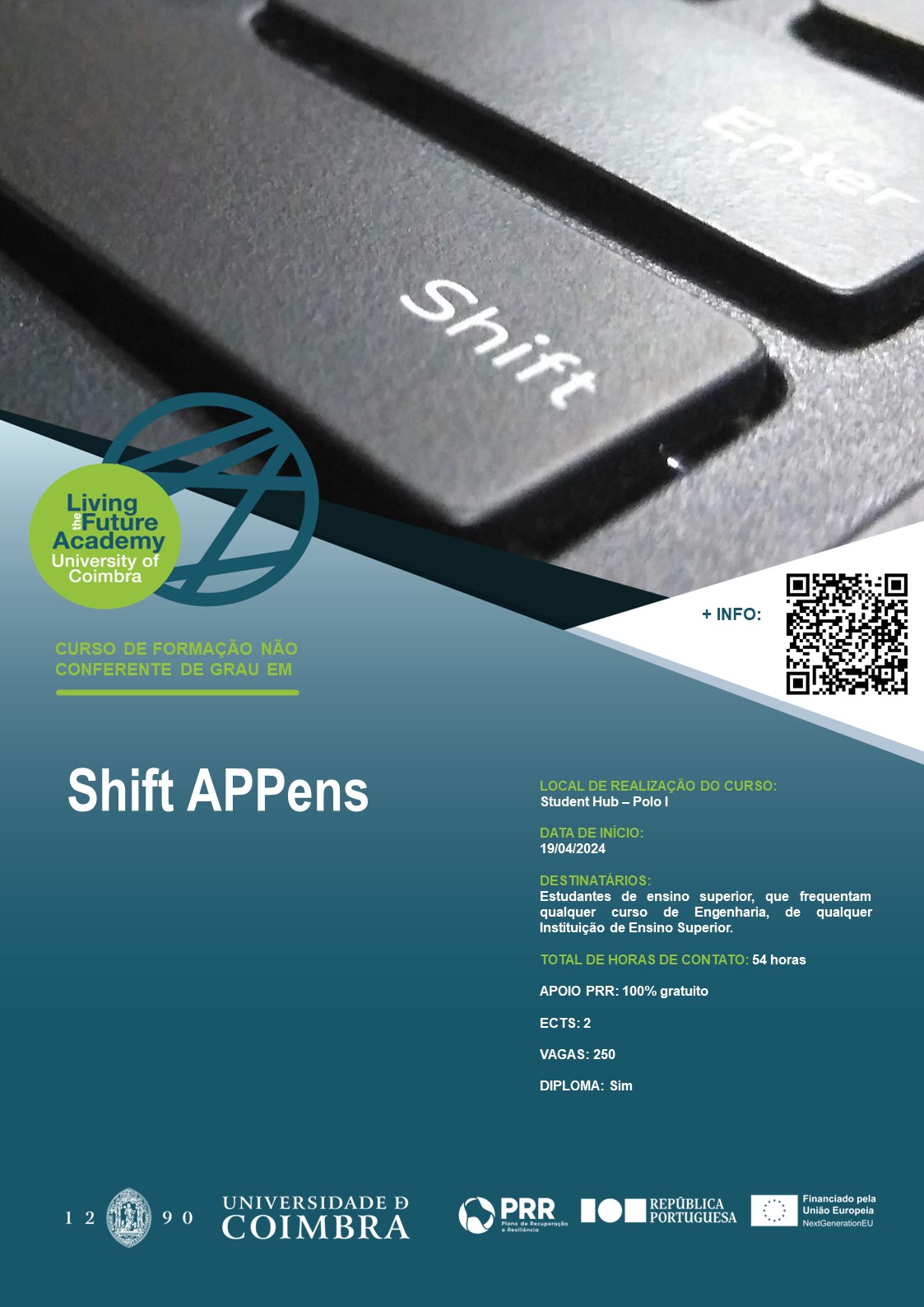 O Curso de formação "Shift APPens" consiste na criação de um projeto inovador com vertente tecnológica, na área da programação.