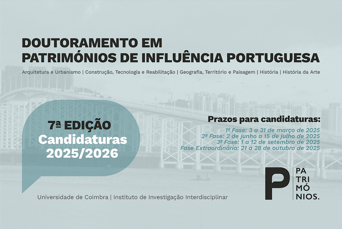 Em setembro de 2025 terá início a 7ª edição do curso de Doutoramento em Patrimónios de Influência Portuguesa, oferecido pelo Instituto de Investigação Interdisciplinar da Universidade de Coimbra.