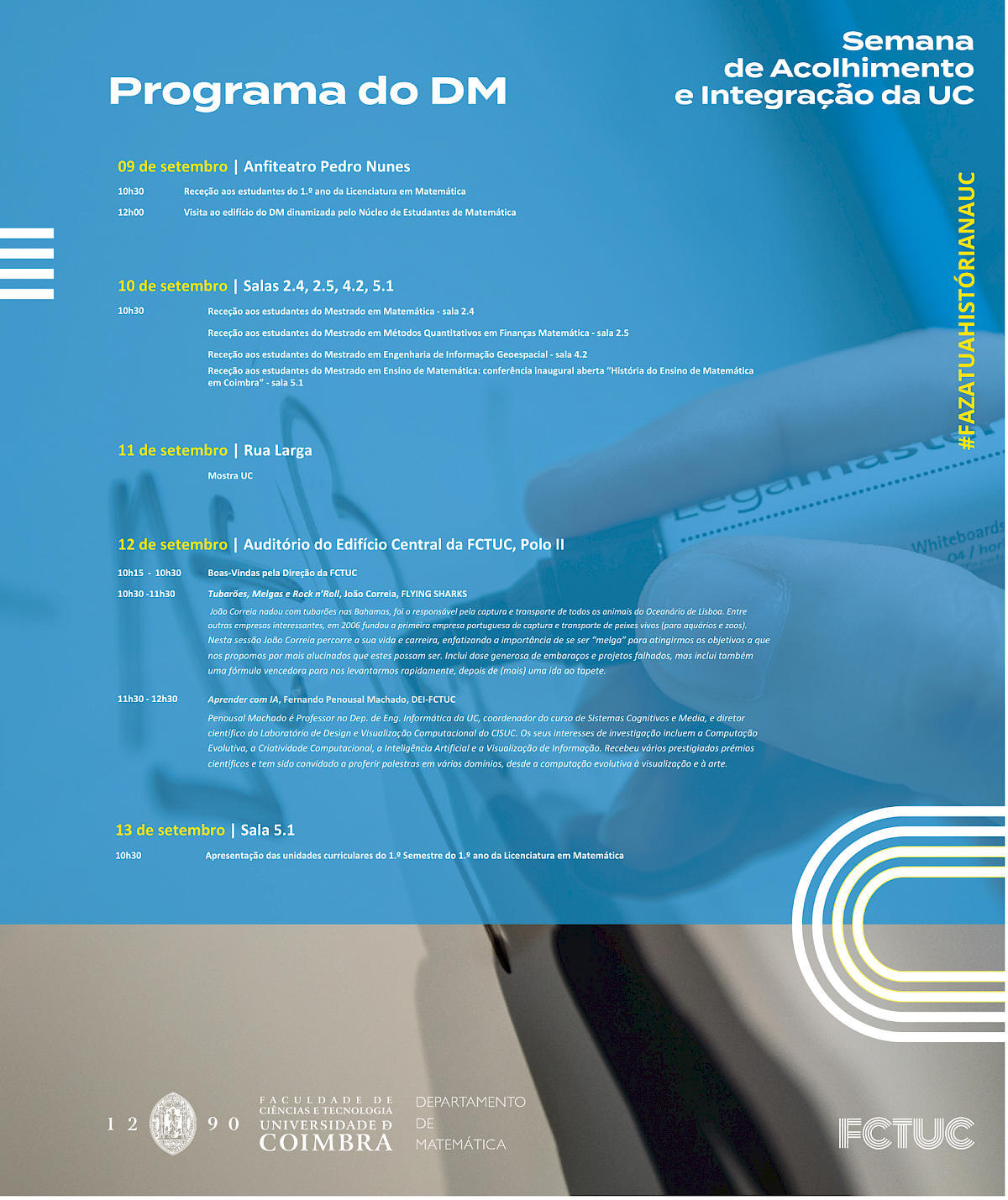 Programa do DM para a semana de Acolhimento e Integração da UC