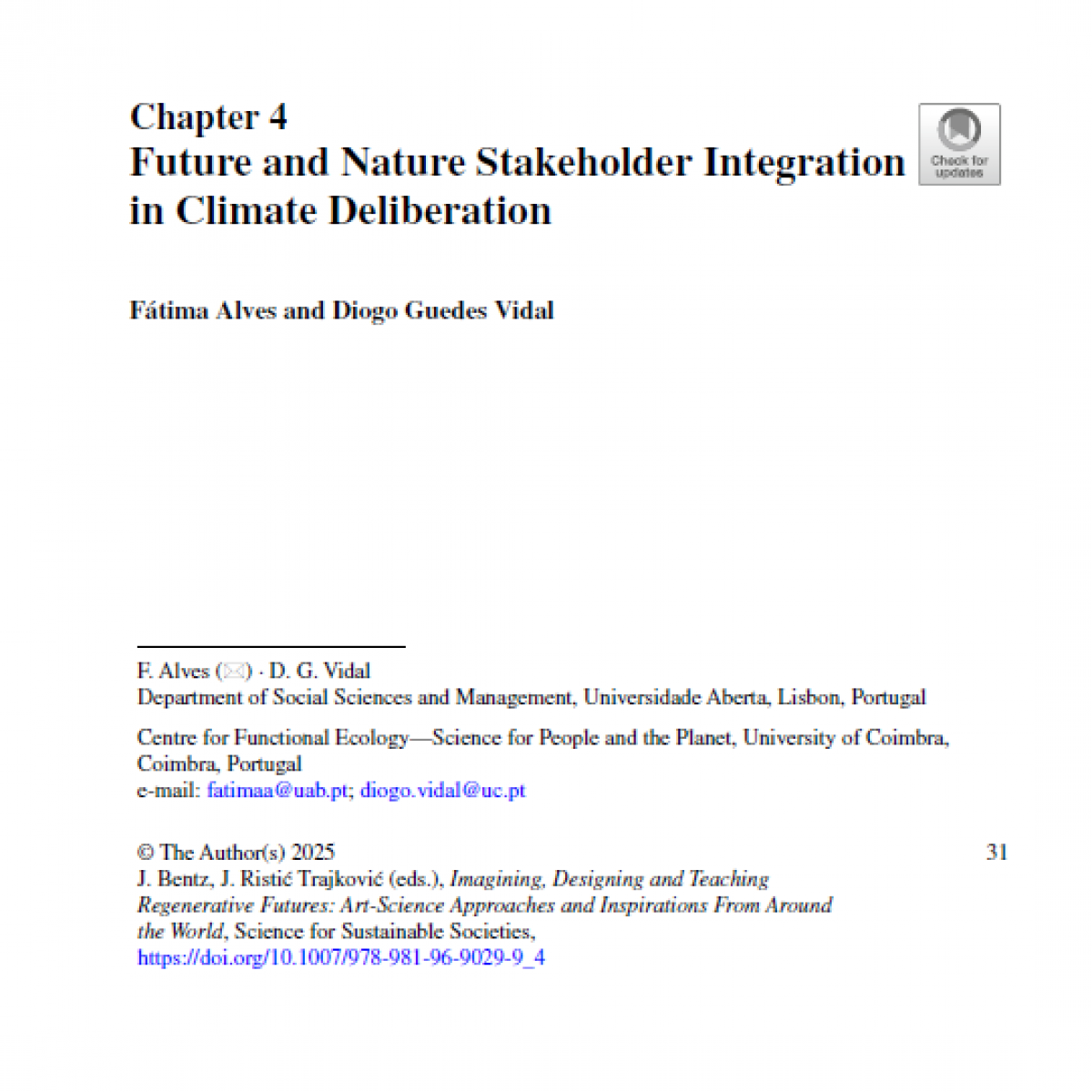 This is the question that guided our most recent chapter published by Springer: “Future and Nature Stakeholder Integration in Climate Deliberation” by Fátima Alves* and Diogo Guedes Vidal*