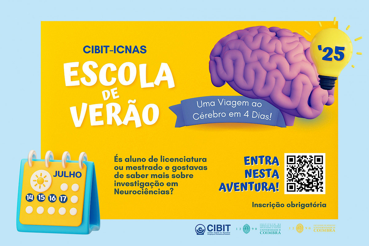 The fourth edition of the CIBIT-ICNAS Summer School is just around the corner! This year’s theme, ‘Around the Brain in 4 Days!’, runs from 14 to 17 July at the Health Sciences Campus (Polo III) of the University of Coimbra (UC).