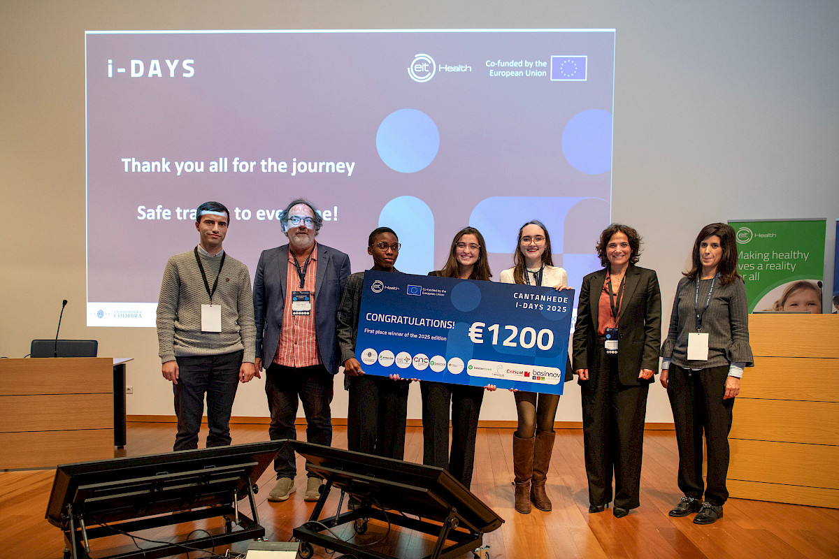 The team will receive a €1,200 prize — including €500 scholarships from Basinnov Life Sciences/FHC Group and €200 from Critical Software — and will represent the University of Coimbra at the i-Days Final in Paris this November, where the best ideas developed by each participating institution will be pitched. The event is held simultaneously in 16 European countries as part of the EIT Health network.