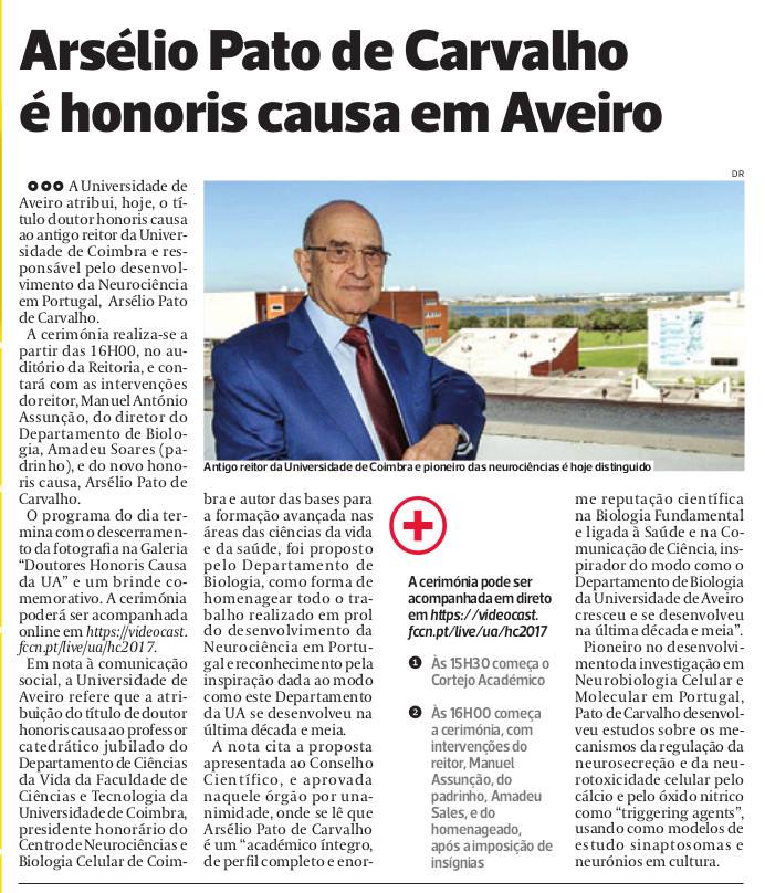 JANEIRO Arsélio Pato de Carvalho é honoris causa em Aveiro