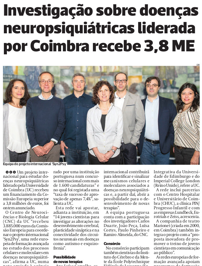 JUNHO Investigação sobre doenças neuropsiquiátricas liderada por Coimbra recebe 3,8 M€