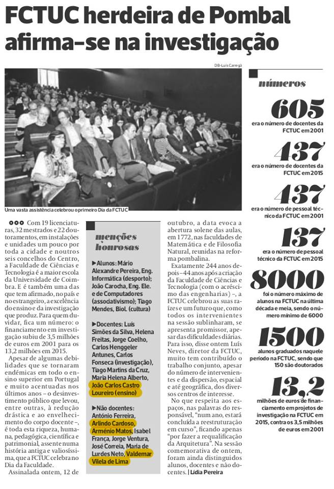 JANEIRO FCTUC herdeira de Pombal afirma-se na investigação