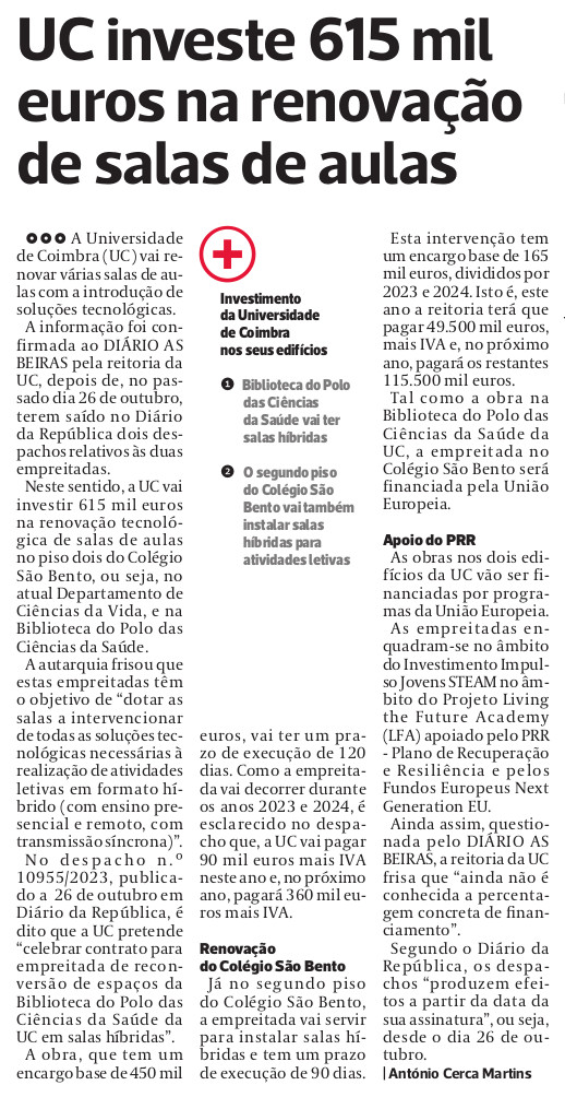 NOVEMBRO UC investe 615 mil euros na renovação de salas de aulas