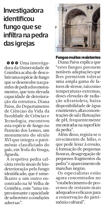 DEZEMBRO Investigadora identificou fungo que se infitra na pedra das igrejas
