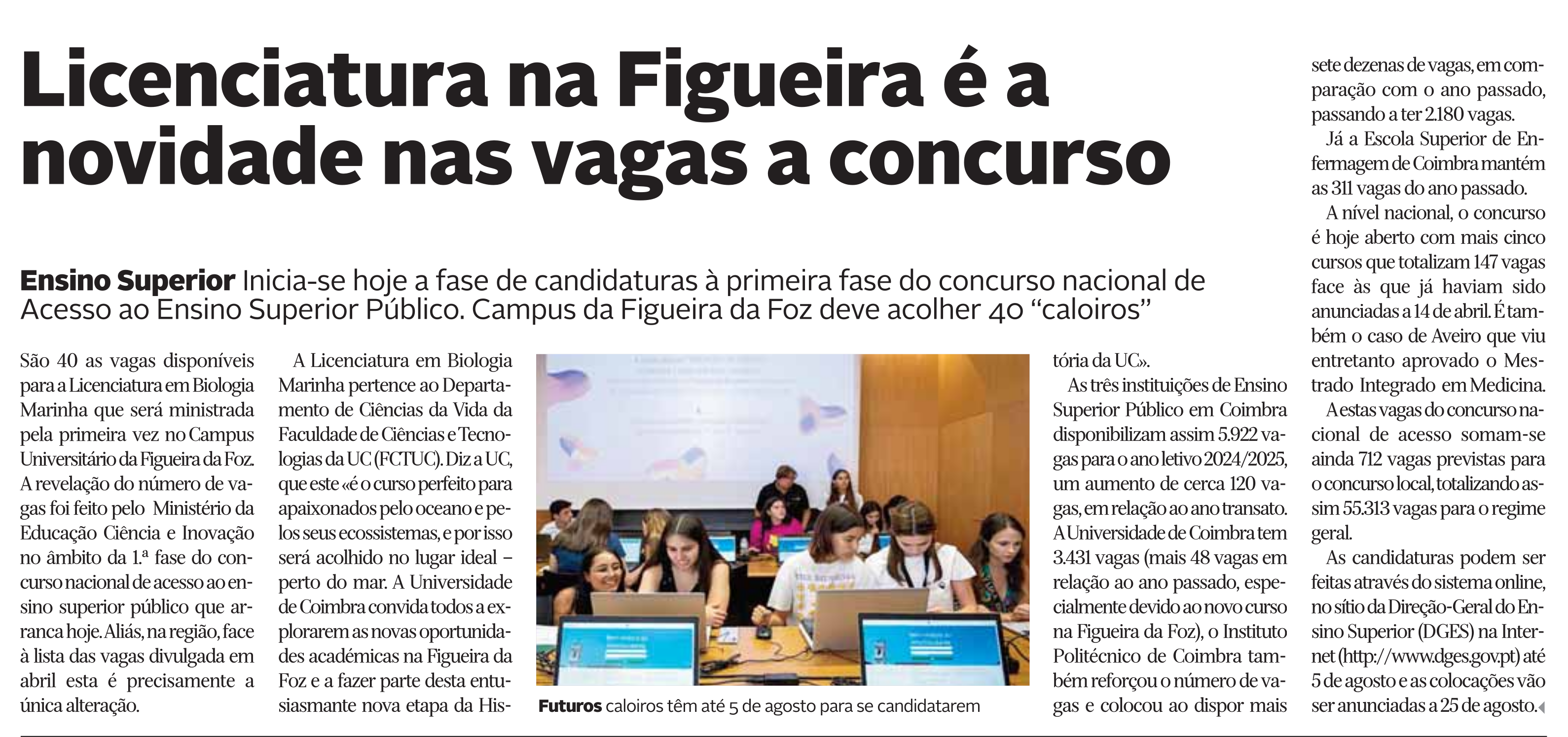 JULHO Licenciatura na Figueira é a novidade nas vagas a concurso