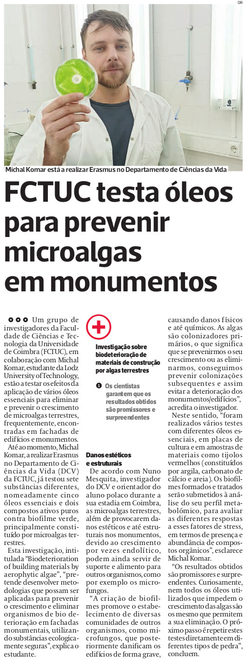 FCTUC testa óleos para prevenir microalgas em monumentos