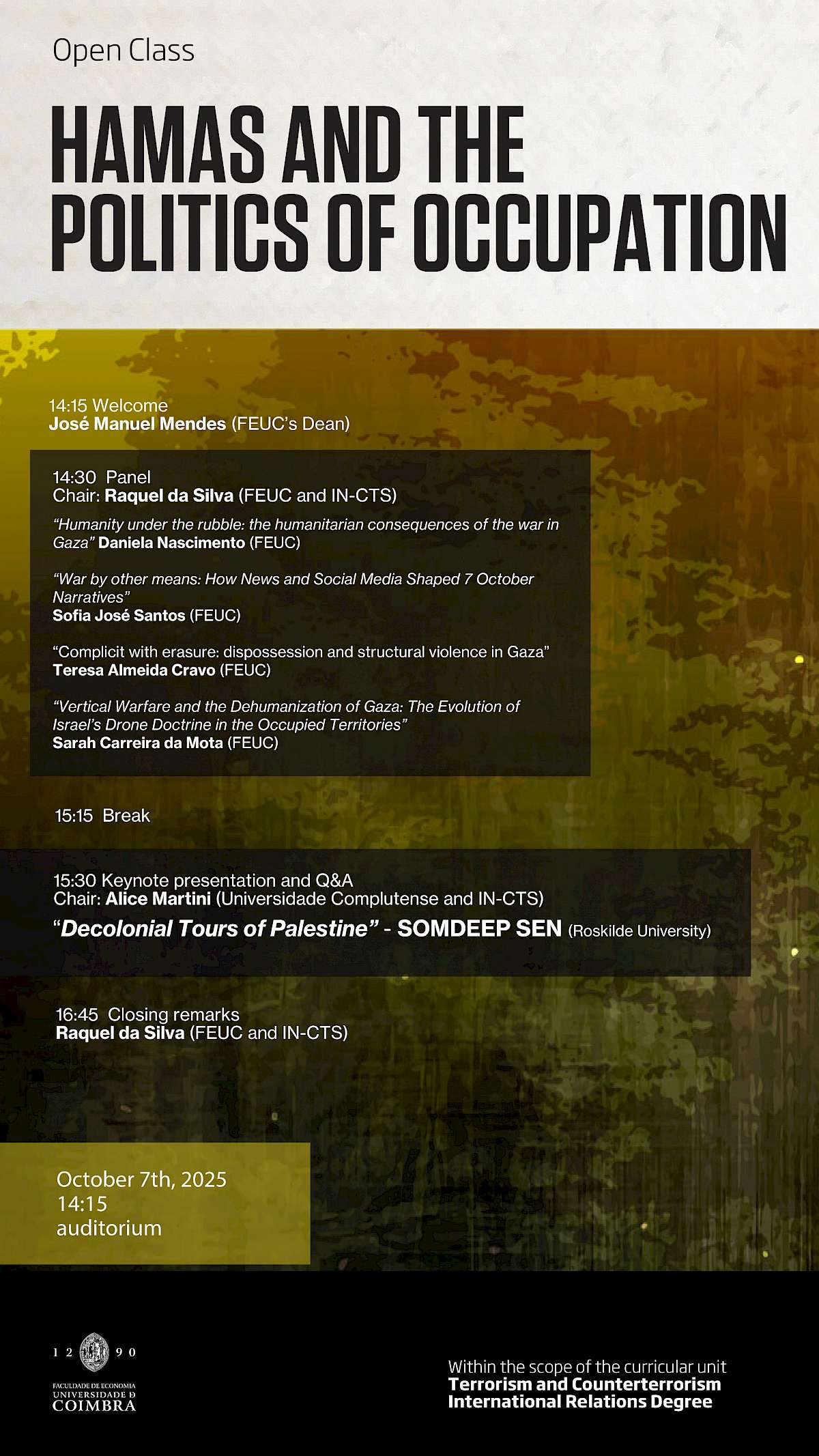 - “Complicit with erasure: dispossession and structural violence in Gaza” - Teresa Almeida Cravo (FEUC)