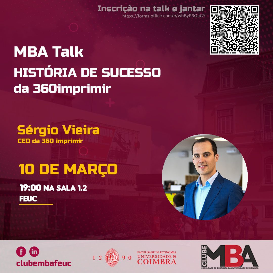 No dia 10 de março decorre uma MBA Talk, com a presença de Sérgio Vieira da 360imprimir.