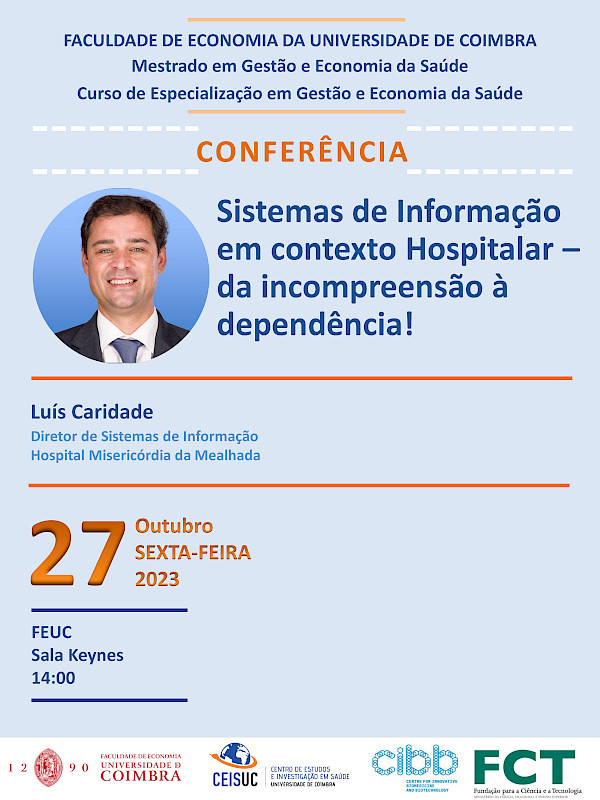 Realiza-se 27 de outubro pelas 14h a conferência "Sistemas de informação em contexto Hospitalar - da incompreensão à dependência" com Luís Caridade.