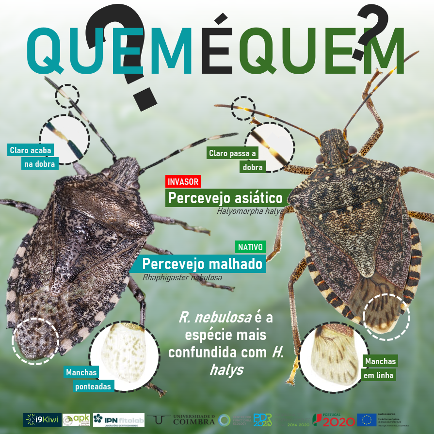 Making the necessary steps to follow the spread of Brown Marmorated Stink Bug (Halyomorpha halys) in Portugal since late 2018 within the scope of i9kiwi project. We started using several approaches to spread the work, including identification flyers, specifics posts on social media about the biology of this emergent pest, and a strong presence in the media in late 2019 (CLICK TO EXPLORE, RTP, TVI, Euronews, Antena 1, Observador and comedy shows mentions like Cá por casa and Portugalex). A big part of our work is to have an open channel about this topic using a facebook group, to promote the inaturalist project and to keep spreading the word in seminars. The members involved the most in this initiative are Hugo Gaspar, João Loureiro and Sílvia Castro.