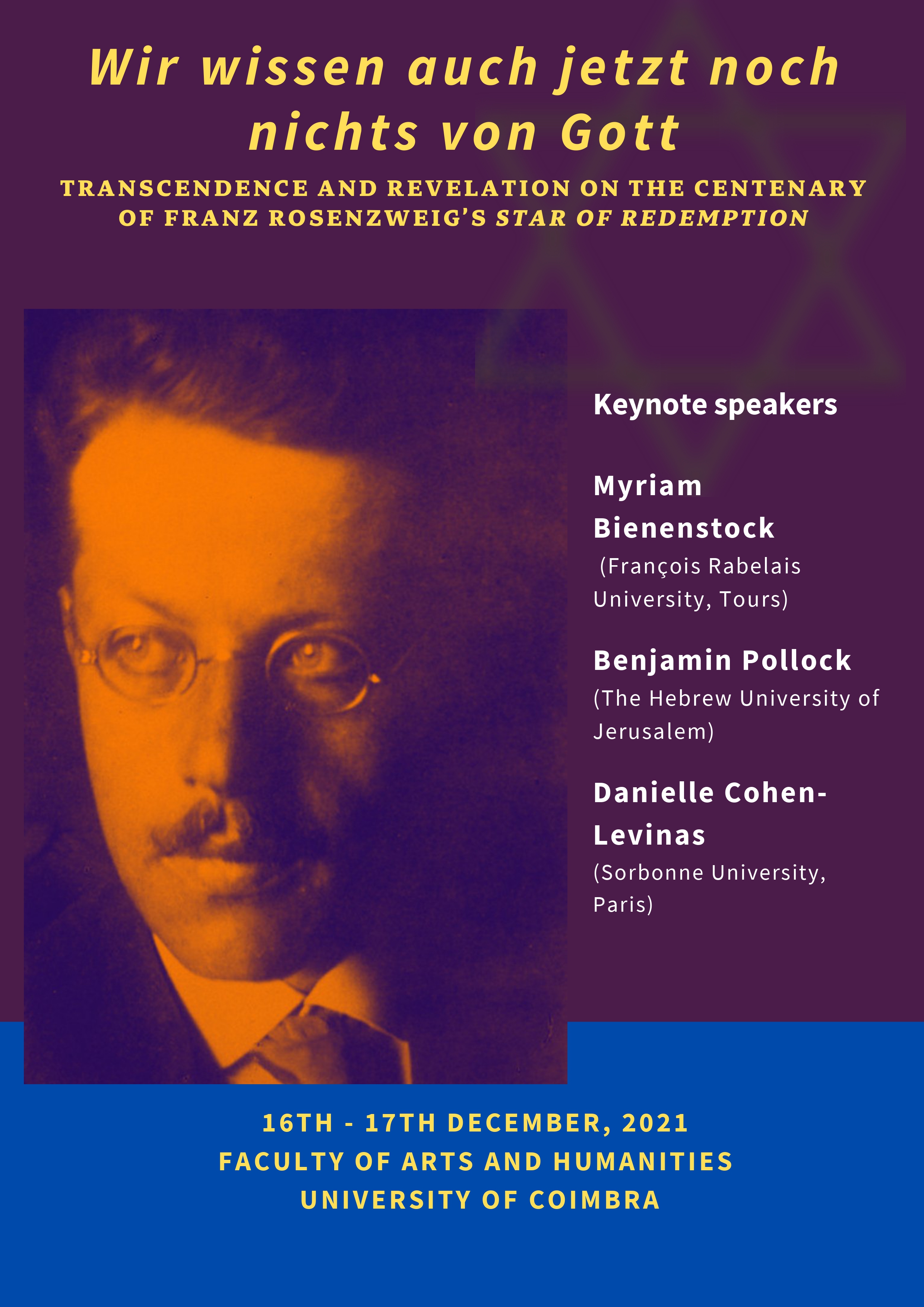 The 2021 Coimbra Commemorative International Conference on the Star of Redemption will address two main dimensions of the book.
