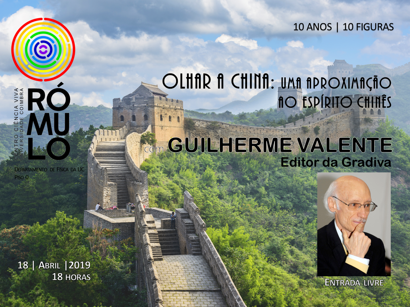 No âmbito do programa 10 ANOS | 10 FIGURAS, que o RÓMULO - Centro Ciência Viva da Universidade de Coimbra está a desenvolver no âmbito das comemorações do seu 10º aniversário, Guilherme Valente, editor da Gradiva e grande conhecedor e apaixonado pela China, será o próximo convidado, merecendo uma justa homenagem pela sua longa e fértil vida dedicada à edição de livros.
