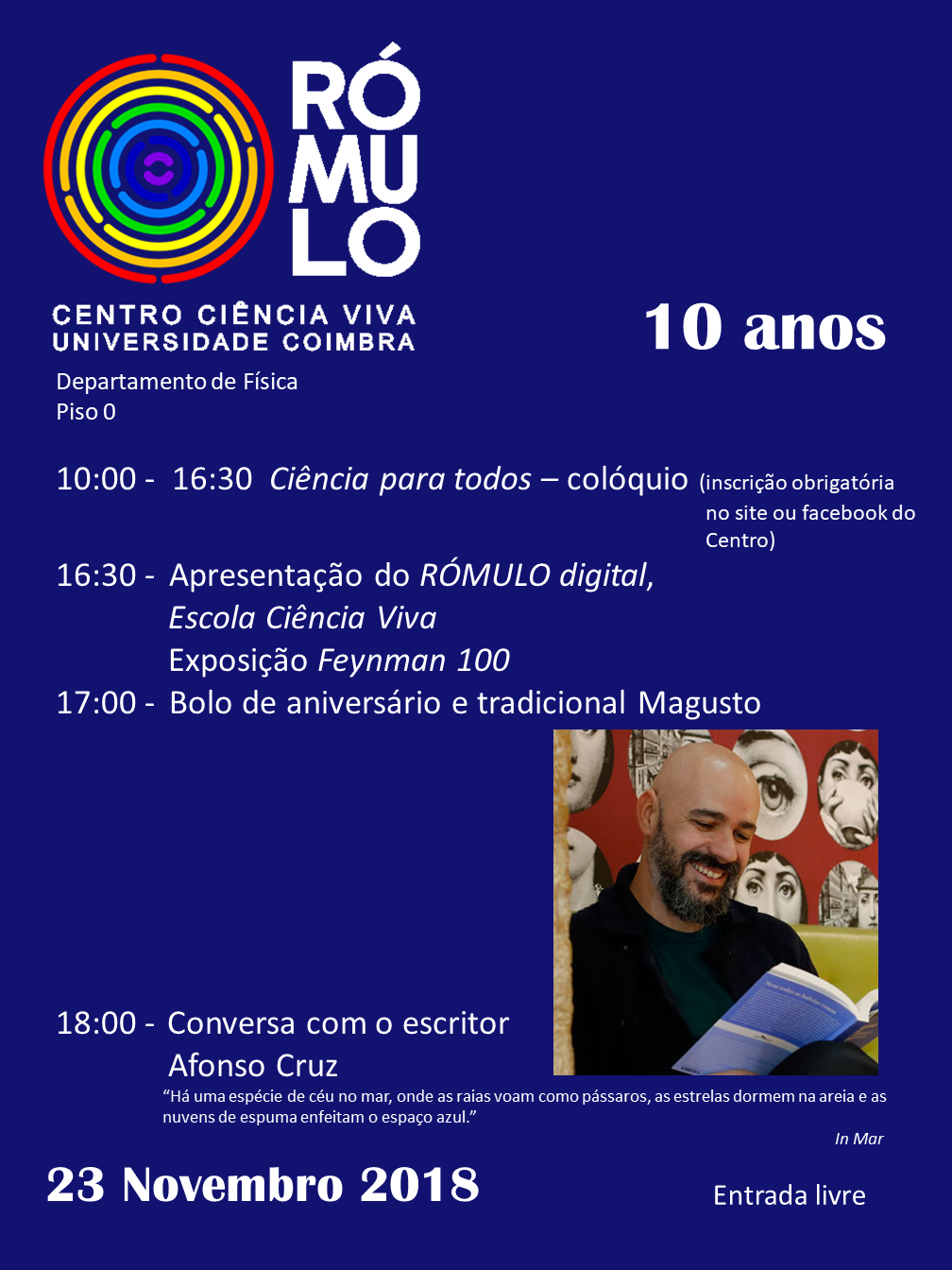 No âmbito da comemoração do 10º Aniversário do RÓMULO apresentamos a 2ª parte do programa, do qual destacamos a conversa com o escritor Afonso Cruz às 18h.