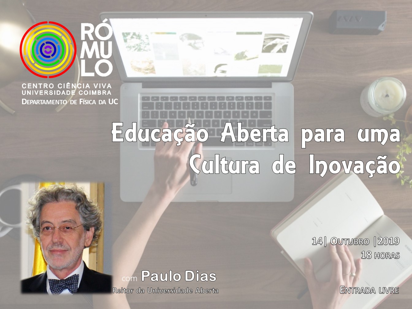 No próximo dia 14 de Outubro, segunda-feira, pelas 18 horas, no RÓMULO - Centro Ciência Viva da Universidade de Coimbra, situado no piso 0 do Departamento de Física da FCTUC, Paulo Dias, Reitor da Universidade Aberta, vem falar de "Educação Aberta para uma Cultura de Inovação".