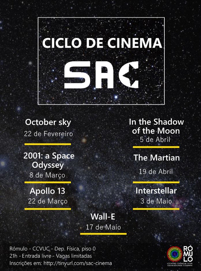 Vai iniciar no Rómulo, na próxima quarta-feira, dia 22 de Fevereiro de 2017, um Ciclo de Cinema, organizado em parceria com a SAC Secção de Astronomia, Astrofísica e Astronáutica da AAC.