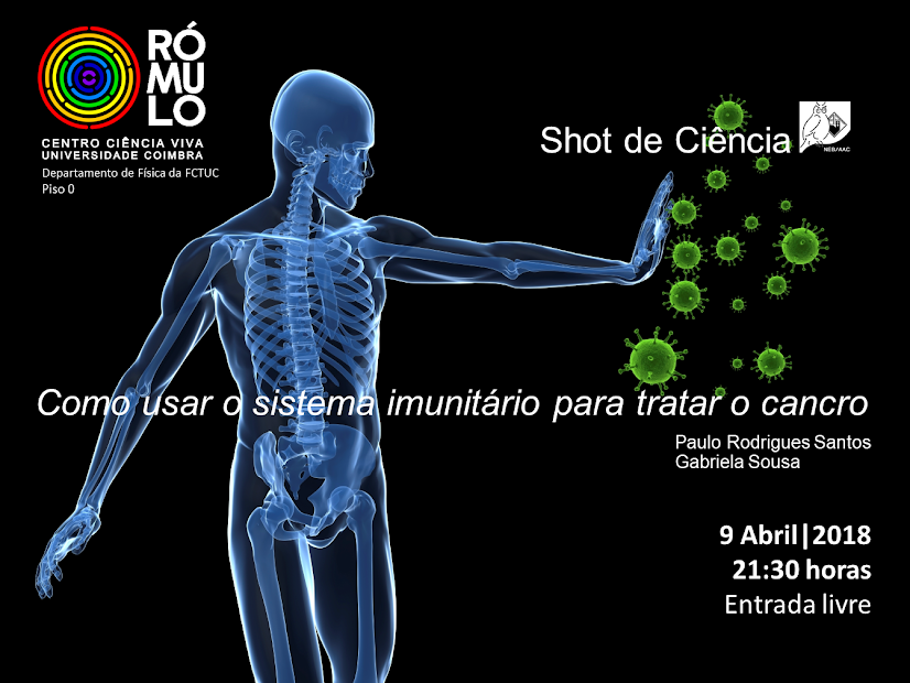 Na próxima 2ª-feira, dia 9 de Abril de 2018, às 21.30, no âmbito do ciclo "Um Shot de Ciência", tem lugar no RÓMULO a palestra  "Como usar o sistema imunitário para tratar o cancro" com Paulo Rodrigues Santos, Gabriela Sousa e Artur Paiva.