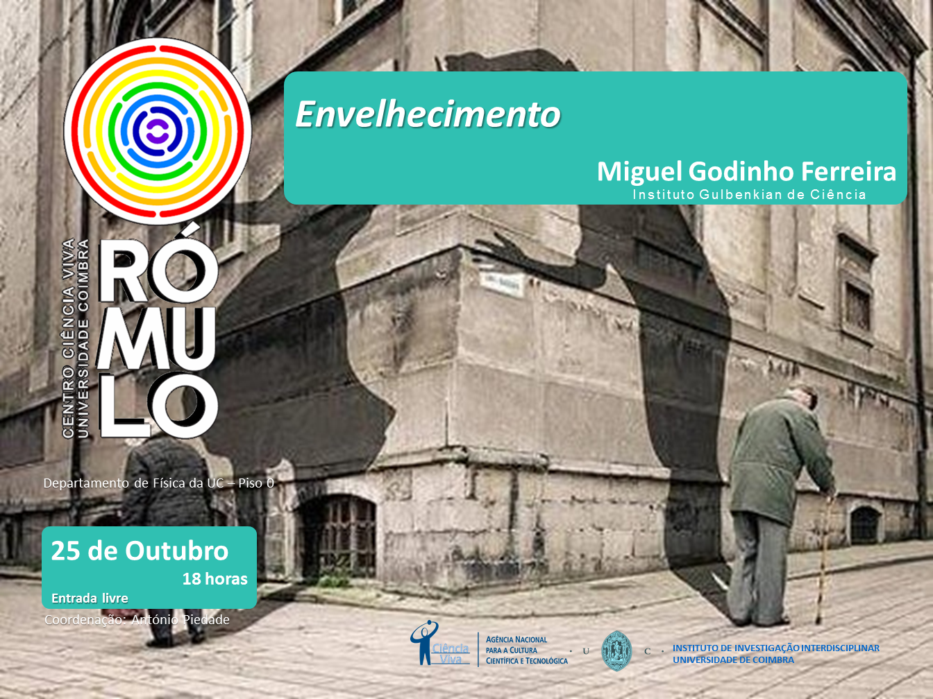 Na próxima 3ª feira, 25 de Outubro de 2016, pelas 18h realiza-se no RÓMULO Centro Ciência Viva da Universidade de Coimbra, a palestra intitulada "Envelhecimento", com Miguel Godinho Ferreira do Instituto Gulbenkian de Ciência.