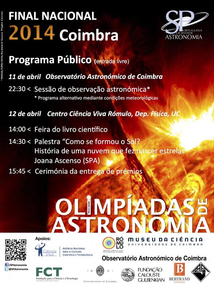 No próximo sábado, 12 de Abril de 2014, às 14.00h, no RÓMULO Centro de Ciência Viva da Universidade de Coimbra, terá lugar o evento" Olimpíadas de Astronomia 2014 - Final Nacional"