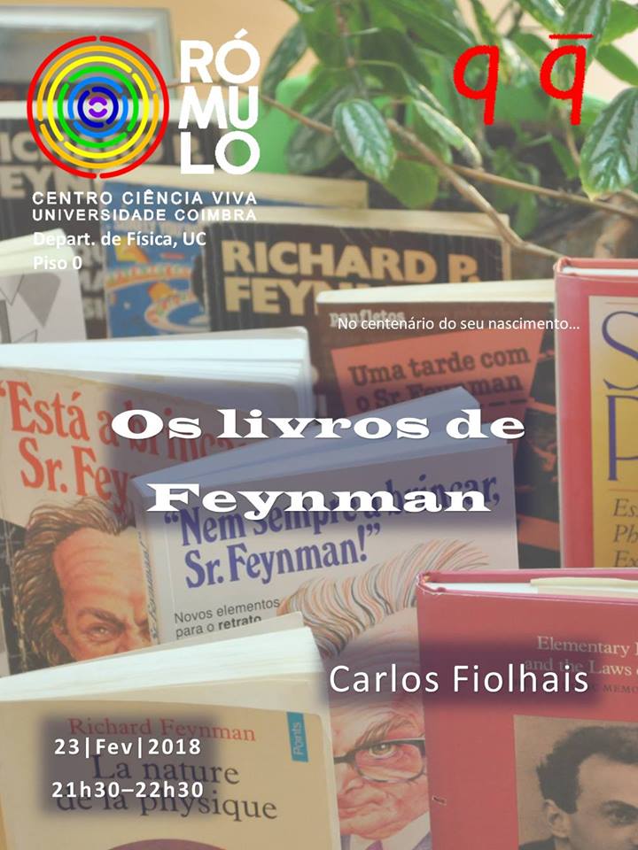 Na próxima 6ª feira, dia 23 de fevereiro de 2018, pelas 21.30, no âmbito do Projecto Quark! - Escola de Física para Jovens, terá lugar no Rómulo - Centro Ciência Viva Universidade Coimbra a palestra "Os livros de Feynman", com o Professor Carlos Fiolhais do Departamento de Física da FCTUC, director do Rómulo.