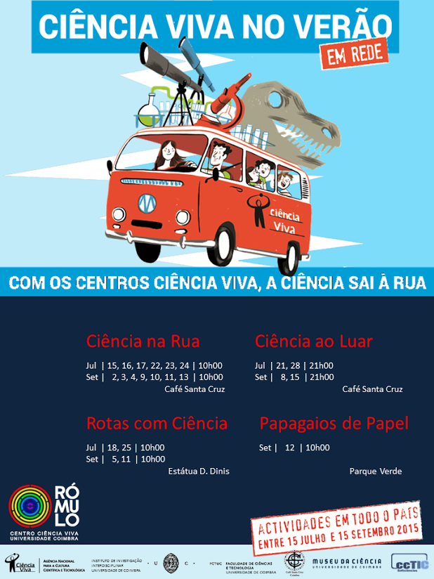 Este sábado, 18 de Julho de 2015 às 10:00, no âmbito do Ciência Viva no Verão em Rede 2015, o RÓMULO CCVUC leva a Ciência à rua com as Rotas com Ciência : Química à luz do dia.