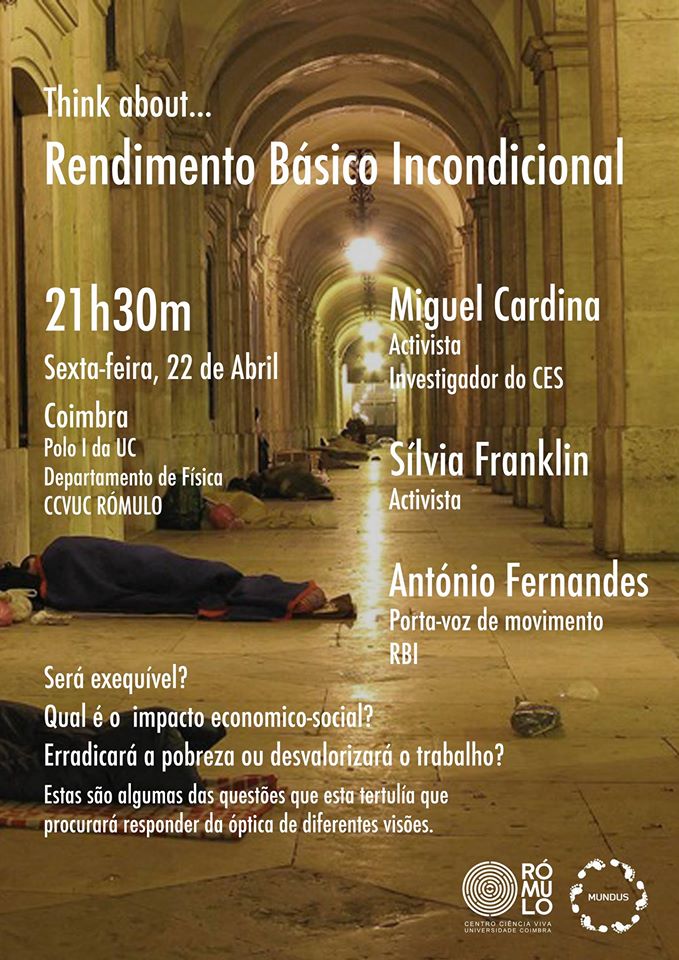 "Think about... Rendimento Básico Incondicional", com a participação de Miguel Cardina, Sílvia Franklin e António Fernandes.