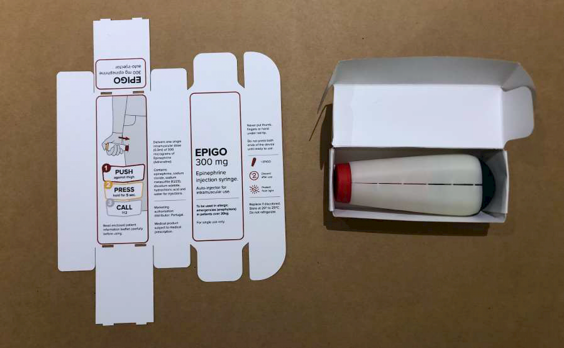 Este dispositivo portátil auto-injetor com dose de epinefrina para injeção intramuscular, revela uma maior facilidade de aplicação de medicação de emergência em indivíduos sem treino prévio no uso de injetáveis, tanto no próprio como em terceiros, relativamente a soluções existentes.