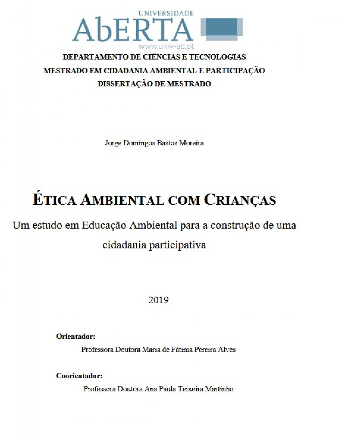 "O presente trabalho analisa a perceção, a relação e as práticas que as crianças do primeiro ano de escolaridade do ensino público têm com os seres não-humanos e a Natureza, tendo como base as várias correntes da Ética Ambiental. Este estudo reflete as causas da crise ambiental e aponta caminhos para a construção de uma cidadania ambiental e participativa. Implementámos uma metodologia mista (qualitativa e quantitativa), mas com prevalência da abordagem qualitativa, através da elaboração de entrevistas semiestruturadas. A análise dos dados permitiu responder aos objetivos propostos (perceções e práticas), demonstrando apreço e respeito dos alunos com a Natureza e as outras formas de vida, numa pluralidade de modelos e considerações dentro da Ética Ambiental. Nesse contexto, evidenciou-se uma visão marcadamente antropocêntrica – a defesa da Natureza porque ela traz algum benefício para o ser humano – mas, também, foi possível identificar considerações que se afastam dos interesses especificamente pessoais e humanos, para abraçar valores intrínsecos de muitos dos elementos naturais, inserida em perspetivas bio e ecocêntricas da Ética Ambiental. As narrativas mostraram práticas cuidadas para com a vida em geral e um relacionamento familiar com os animais de estimação. Tanto a análise como a discussão permitem perceber as lacunas da Educação Ambiental nas escolas públicas onde foram realizadas as entrevistas aos alunos bem como as potencialidades que a dimensão da Ética Ambiental pode oferecer na Educação, mas especialmente nas ações de Educação Ambiental. As evidências que o presente estudo tornou visíveis pode inspirar novos modelos e recomendações em Educação e em Educação Ambiental particularmente, que permitam corrigir questões de relacionamento entre o ser humano e a Natureza para a resolução dos problemas ambientais, também numa perspetiva de uma cidadania ambiental participativa, quadro do presente trabalho no âmbito do tema do Mestrado que o acolhe."